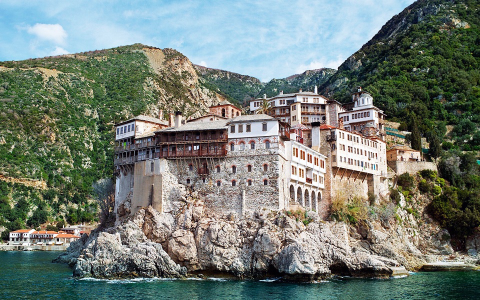 Núi Athos ở Hy Lạp - quốc gia tu viện ở Hy Lạp là khu vực linh thiêng với quần thể 20 tu viện Chính thống giáo và được xếp hạng Di sản Văn hóa Thế giới.
